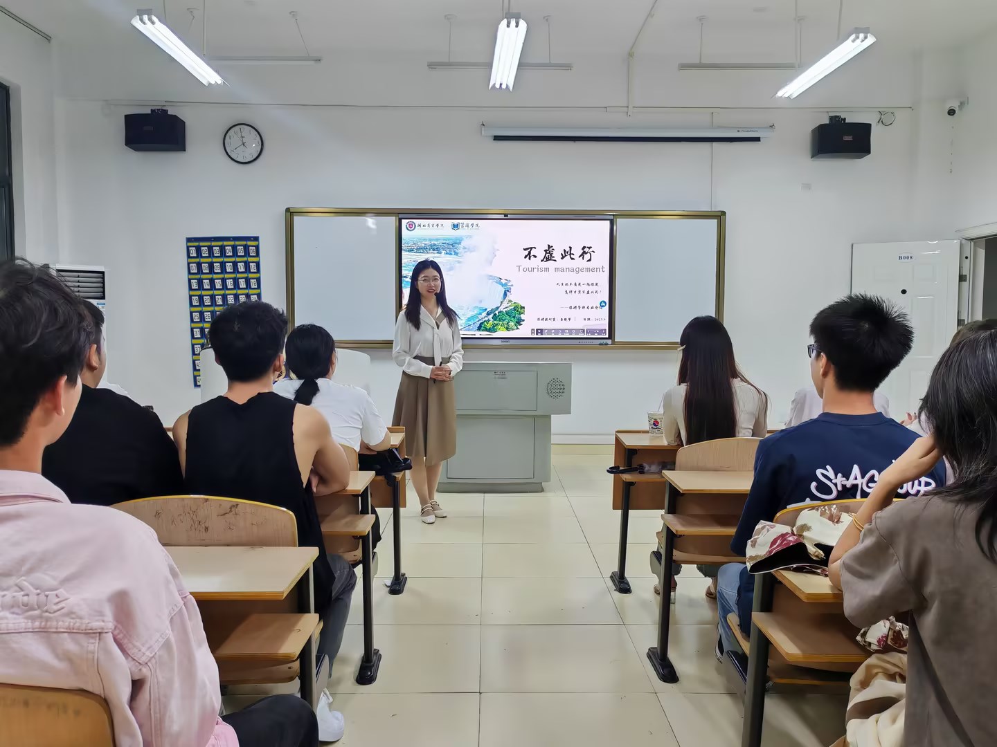 图1 苏晓梦老师为2023级旅游管理新生作专业介绍
