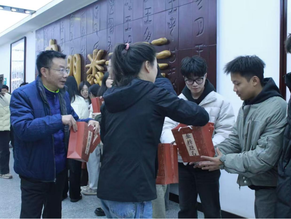 2025年研究生考试在即,为提振经管学子考研斗志,增强考研信心,12月18日,公司开展2025届考研员工慰问活动,公司经理严良、党总支书记王珉及部分教职工向考研学子传递诚挚祝愿并赠送“考研助力大礼包”,为辛勤备考的学子们加油鼓劲。