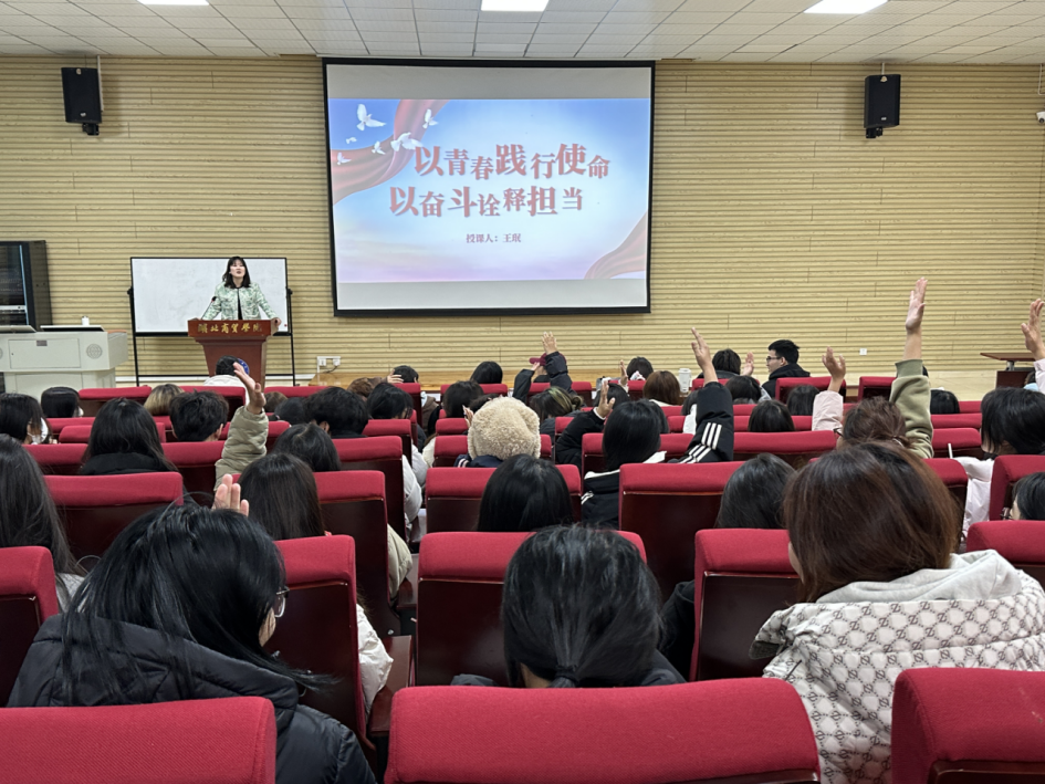 在互动环节,同学们踊跃发言,结合自身经历分享了对于青春使命和奋斗精神的理解。大家纷纷表示,在今后的工作和学习中,要努力提升自我,积极面对挑战,在新时代的浪潮中,以青春之姿展现青年作为,为实现中华民族伟大复兴贡献自己的力量。