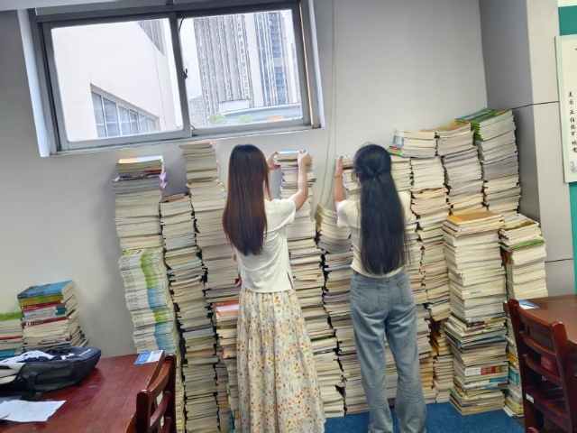 捐赠现场秩序井然、温情满溢。辅导员与教师团队全程协助书籍登记、整理与搬运,用实际行动践行服务精神,现场气氛温馨感人。