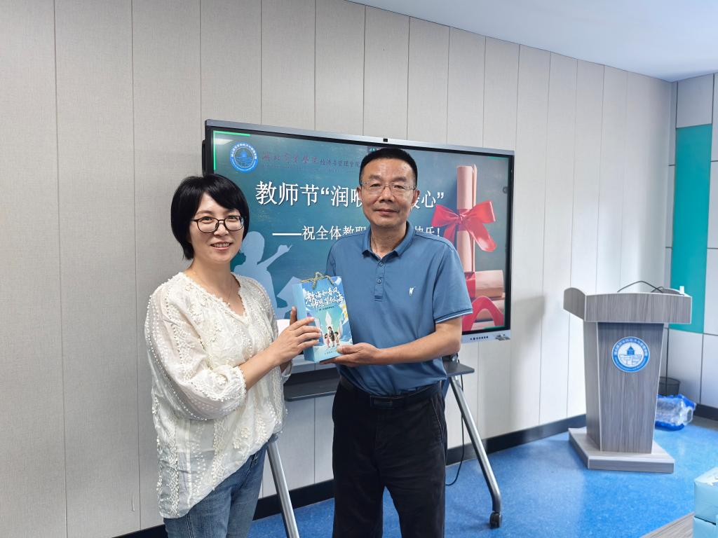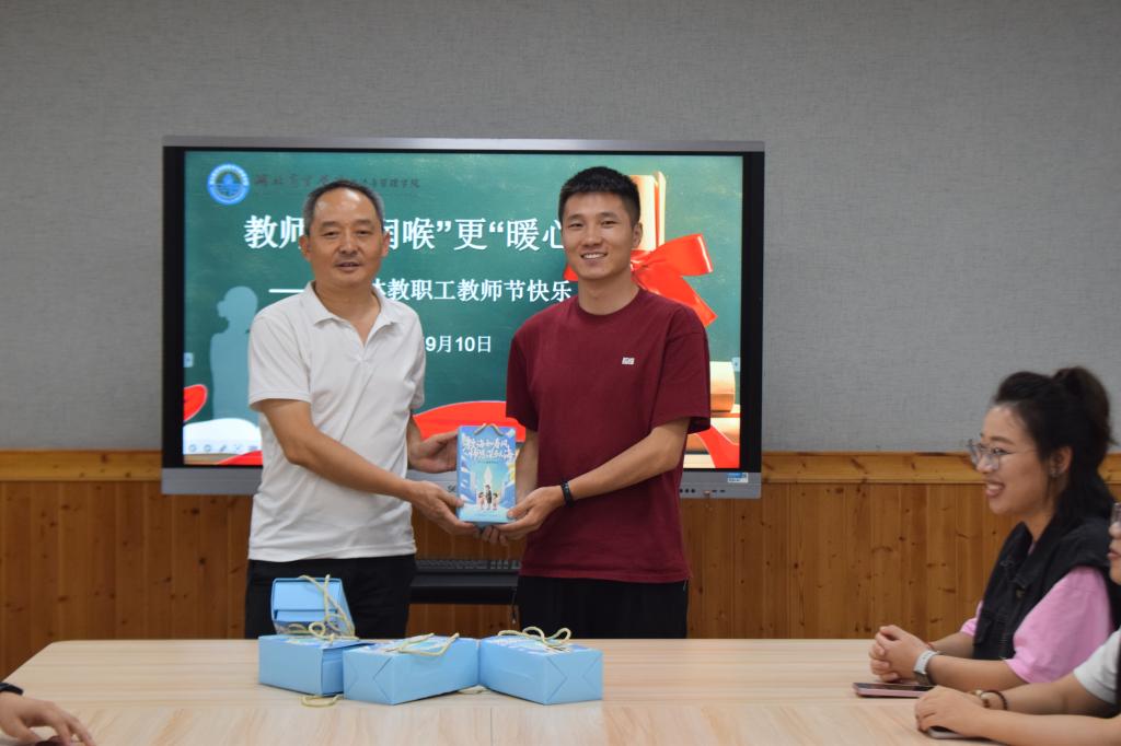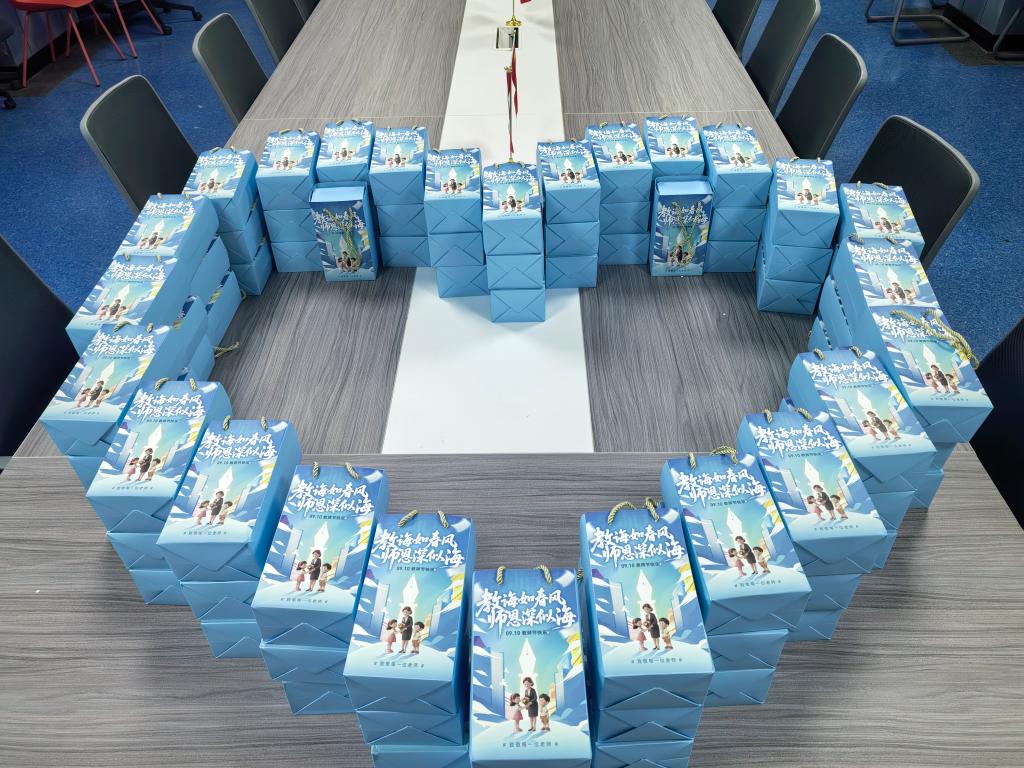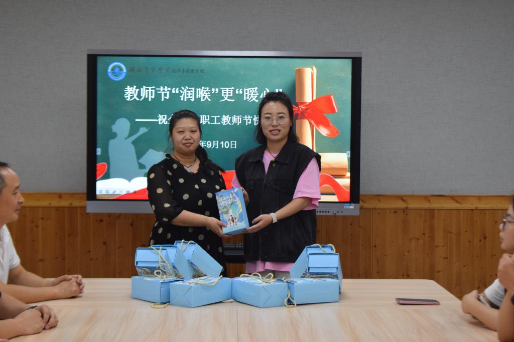 与此同时,咸宁校区的教师节慰问活动同步开展。公司副经理徐刚、党总支副书记郑燕培将包装精美的润喉糖逐一送到教师手中,向大家致以节日的祝福。