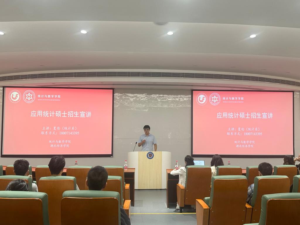 宣讲会伊始,卢红霞首先对湖北经济公司两位到访教师表示热烈欢迎,并简要介绍了他们的学术背景和研究方向。随后,夏伦博士围绕应用统计硕士的培养历史、学科特色、研究方向、团队力量以及招生政策展开宣讲,重点介绍该硕士点依托统计学重点学科和大数据科研平台,在社会经济统计和大数据应用方面的优势。他还结合近年毕业生的就业案例,展示了良好的发展前景,并详细解读了考试科目和复试要求。宣讲内容深入浅出,为公司员工提供切实可行的考研指导。
