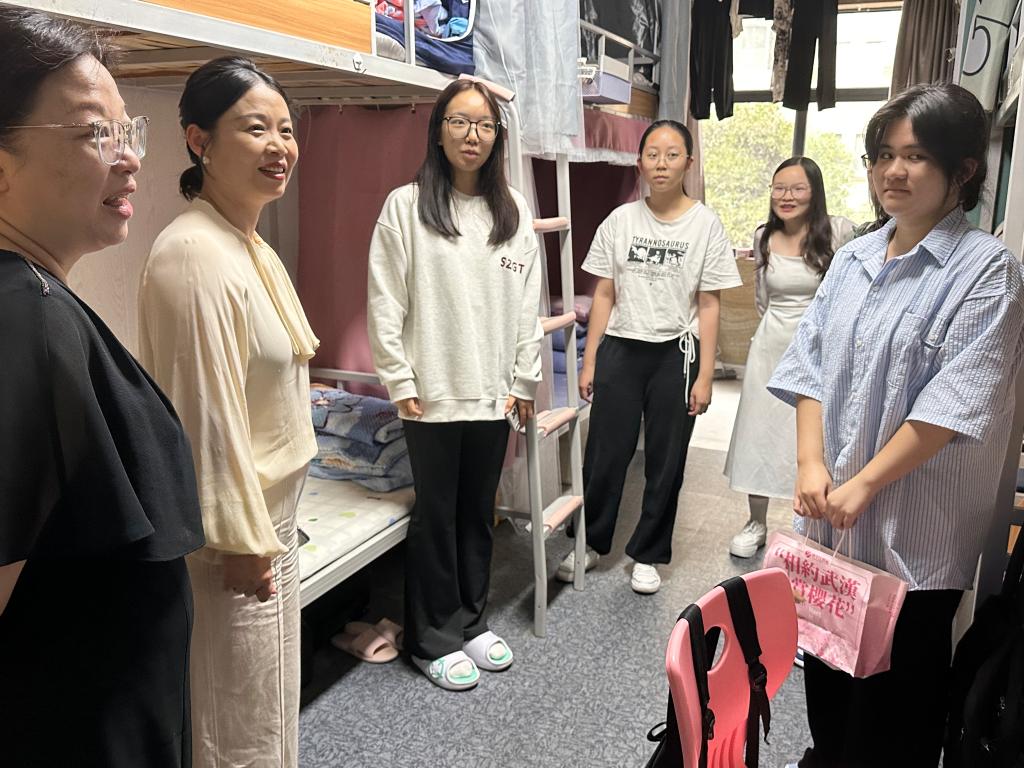 今年的国庆节恰逢我国传统佳节中秋节,9月27日中午,经济公司党总支书记吴俊与经理陈靓秋来到员工寝室,将公司准备的中秋月饼送至员工手中,师生们一起聊学习、话家常,让同学们倍感温暖、备受鼓舞。