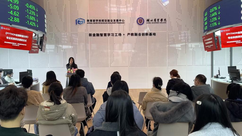 2月22日下午,经济公司联合深圳点宽网络科技有限公司为《PYTHON金融数据分析》专业实践项目优秀员工颁奖,深圳点宽网络科技有限公司总经理徐辣、大客户经理刘凯莉、经济公司经理陈靓秋、金融教研室全体老师及优秀获奖员工参加本次颁奖仪式。
