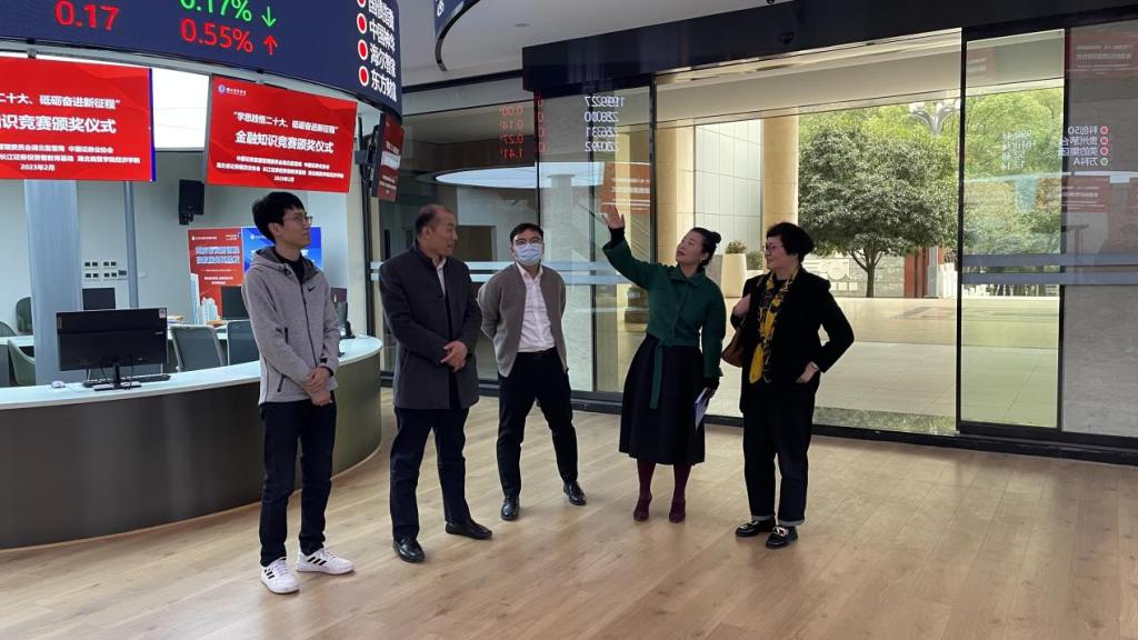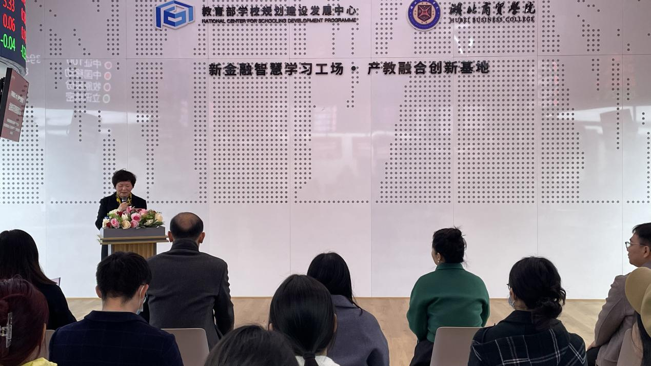 仪式开始前,陈靓秋经理为湖北省证券期货业协会和长江证券嘉宾介绍了tyc33455cc新金融智慧学习工场的建成和使用情况,并进行实地参观。
