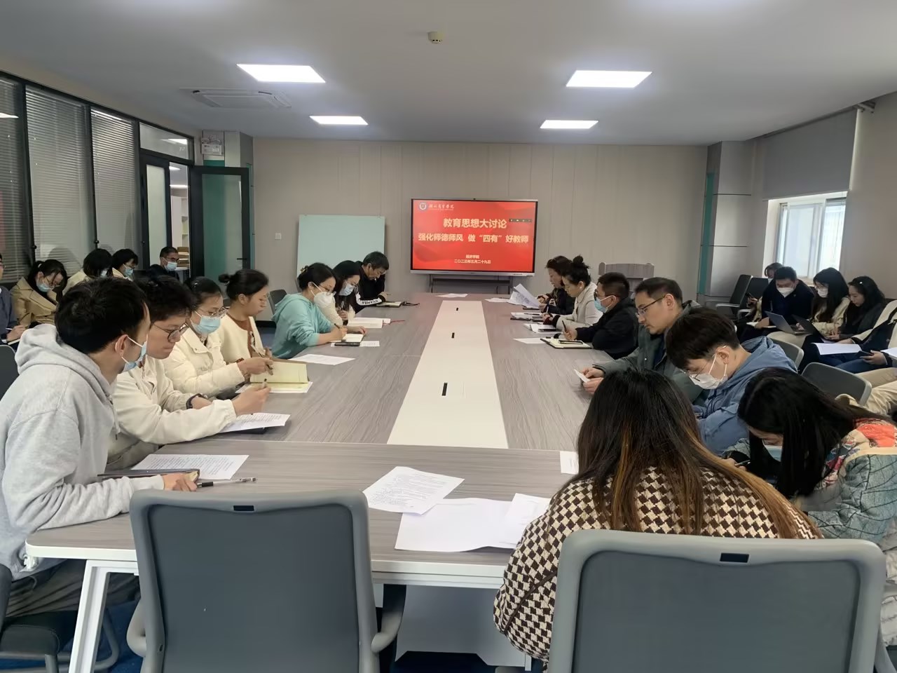 为进一步加强师德师风建设,不断增强公司教师教书育人的使命感和责任感,3月29日下午,经济公司围绕“强化师德师风 做“四有”好老师”专题召开思想大讨论。经济公司党总支书记吴俊、经理陈靓秋及全体教师参加座谈会。会议由党总支书记吴俊主持。