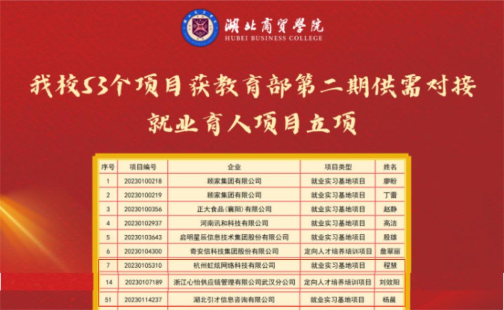 公司高度重视供需对接就业育人项目的申报工作,自2022年10月第二期供需对接就业育人项目启动以来,认真贯彻落实有关文件精神,积极动员老师申报,经过层层审核,最终3个项目获批立项。
