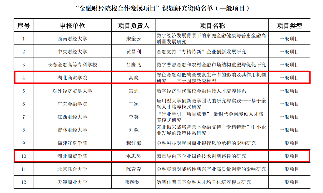 近日,中国金融教育发展基金会发布2023年“金融财经院校合作发展项目”课题研究项目资助立项结果。经济公司高爽老师申报的《绿色金融对低碳全要素生产率的影响及其作用机制研究——基于固定效应模型》,水忠昊老师申报的《双重导向下企业绿色技术创新路径的研究》分别获批一般项目,经费资助8万元。