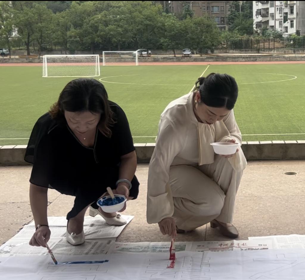 公司领导班子在画作上题字“以吾辈之青春,绘祖国之盛世”勉励同学们以汗水描绘青春,以奋斗谱写未来。师生们在画卷上按下手印。历时5个小时,两校区画面拼合,一幅具有家国色彩的绚丽画卷呈现在众人面前。