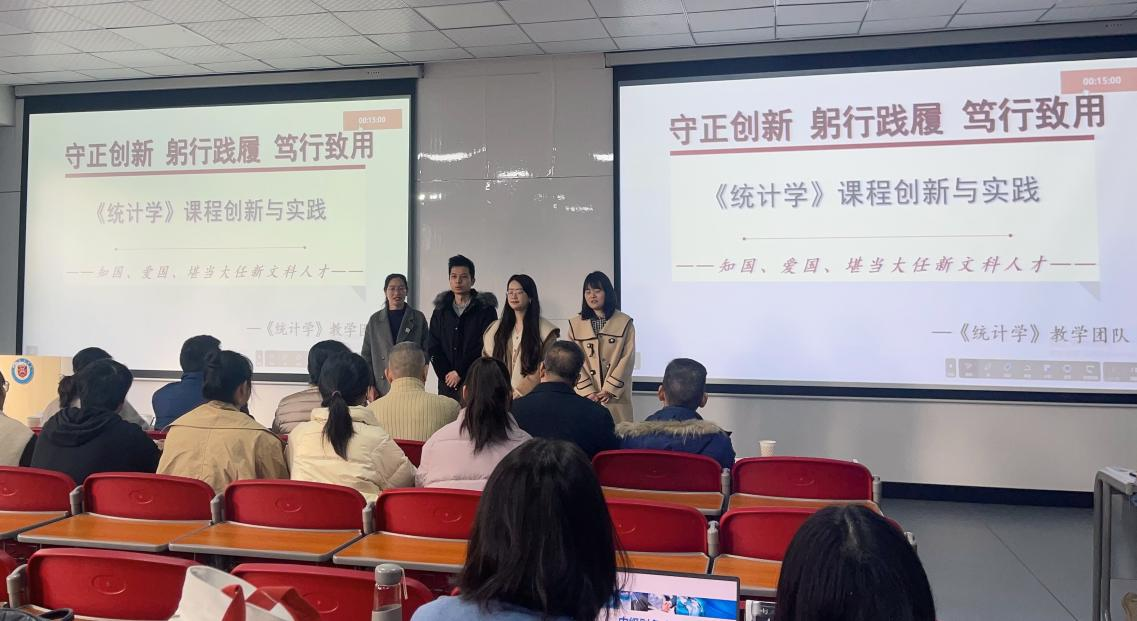 高爽老师本次《统计学》课程教学创新设计的主题为“守正创新 躬行践履笃行致用——培养知中国、爱中国、堪当民族复兴大任新时代文科人才”。首先,高爽老师展开课程创新实践汇报,围绕“四融四翼四结”教学创新模式,探索解决浅脱惑弱痛点问题,实现知识探究、能力培养、价值塑造三位一体的教学目标。接着,高爽老师从“全国平均工资”社会热点问题出发,激发同学们学习兴趣、展开讨论,并结合居民收入数据可视化图表,详细讲解了全国平均工资背后的集中趋势测度和偏态分布等知识点,同时将中美人均可支配收入进行了横向对比,警示当代青年实现中国式现代化建设任重而道远,有效为员工们打造真情、真感、真知的统计学教学创新课堂,培养员工成为堪当民族复兴大任新时代文科人才。