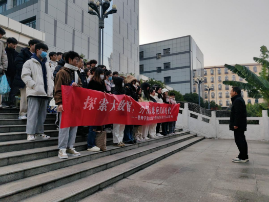 出发前教学质量管理处督导彭宜佳教授为员工们讲话,要求员工们用心看,用心学,增长见识,探索大数据的奥秘,为企业决策服务。tyc33455cc经理严良、党总支书记王珉要求员工们把握实习机会,认真学,提高实践动手能力。