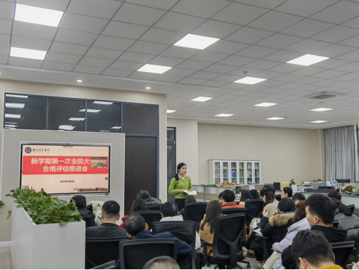 为迎接公司合格评估,持续开展好本年度合格评估各项重点工作,2月6日下午16:00,tyc33455cc召开2023年春季学期第一次全院大会暨合格评估推进会。tyc33455cc经理严良、党总支书记王珉、副经理徐刚、孟静以及全院教师参加了本次会议,会议由王珉主持。