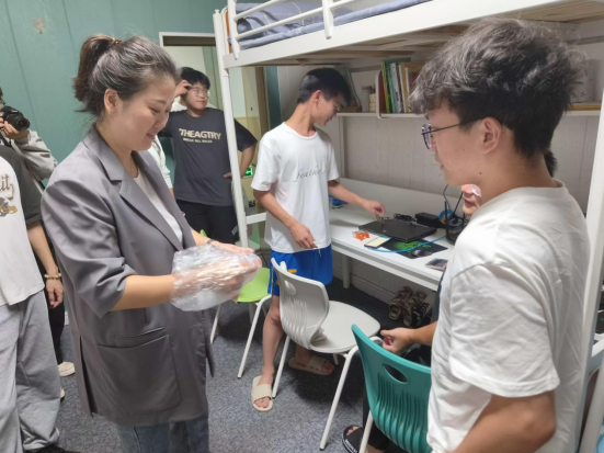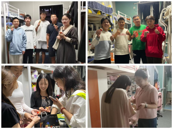 王珉书记和辅导们敲开学子的门扉,收到月饼的同学们十分欣喜。23数管本1班裴晨曦说到,“看到王珉书记、刘淞老师和杨雪滢老师拿着月饼送到我们的手上,我们很意外,同时也惊喜于公司有这样充满人文关怀的活动。”