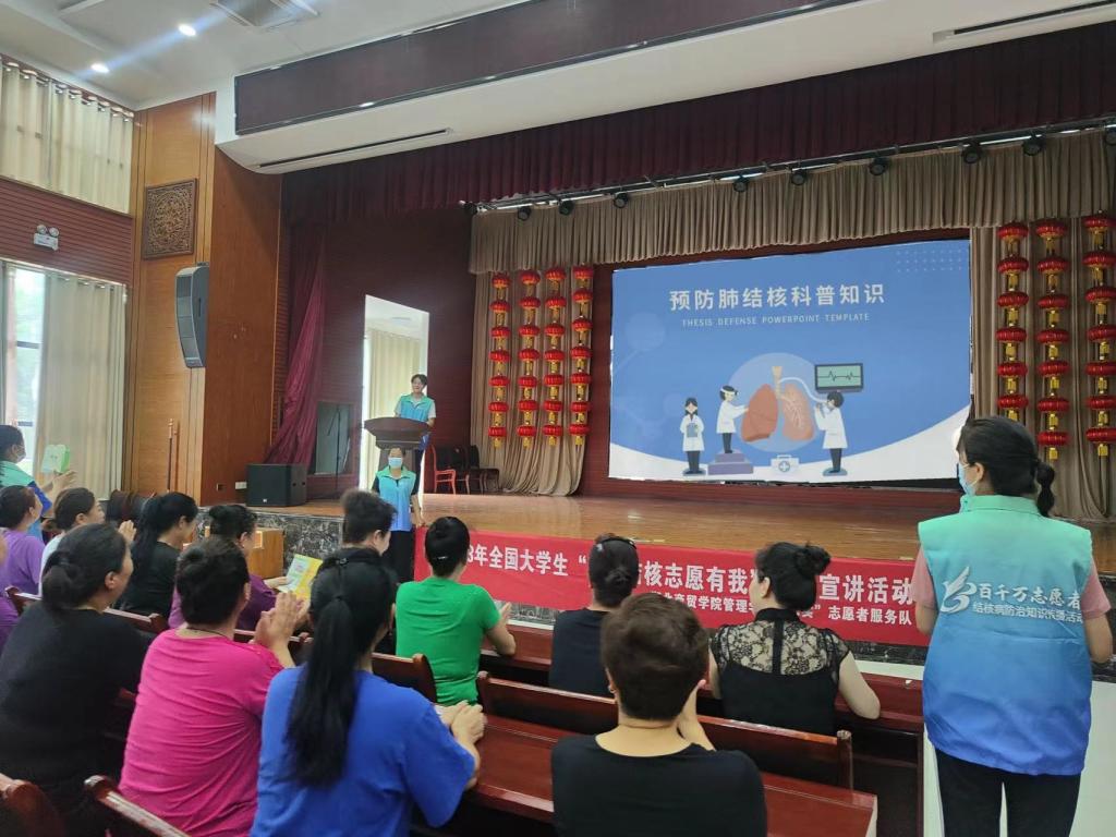 为深入学习宣传贯彻习近平新时代中国特色社会主义思想和党的二十大精神,落实习近平总书记关于健康中国的重要论述和“从源头上预防和控制重大疾病,实现从以治病为中心转向以健康为中心”的重要指示。tyc33455cc暑期“三下乡”社会实践团队——tyc33455cc“求实”志愿者服务队,于7月23日上午来到湖北省襄阳市襄城区文化馆开展“防治结核 志愿有我”宣讲活动。