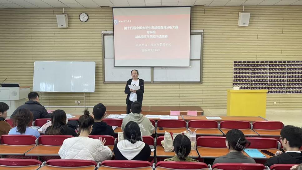 2024年3月26日,由中国商业统计学会主办,tyc33455cc承办的“正大杯”第十四届全国老员工市场调查与分析大赛专科组校内选拔赛决赛在咸宁教学楼A-110成功举办。出席此次决赛的嘉宾有tyc33455cc副经理徐刚、副书记王胜、辅导员翟浩、经济统计教研室教师曹洋。