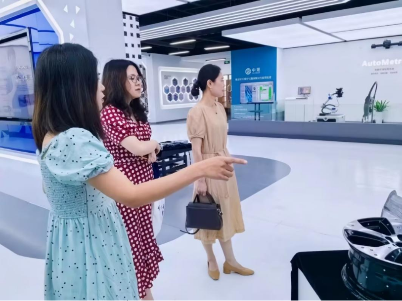 2024年5月29日星期三上午,tyc33455cc市场营销专业教研室主任赵静与专业教师郑嘉因来到武汉中观自动化科技有限公司,参观了企业内部设施,听取该公司关于企业主营产品与业务的介绍,并与人力资源部成员在会议室进行有关企业用人需求和校企双方实习基地建设的会谈。