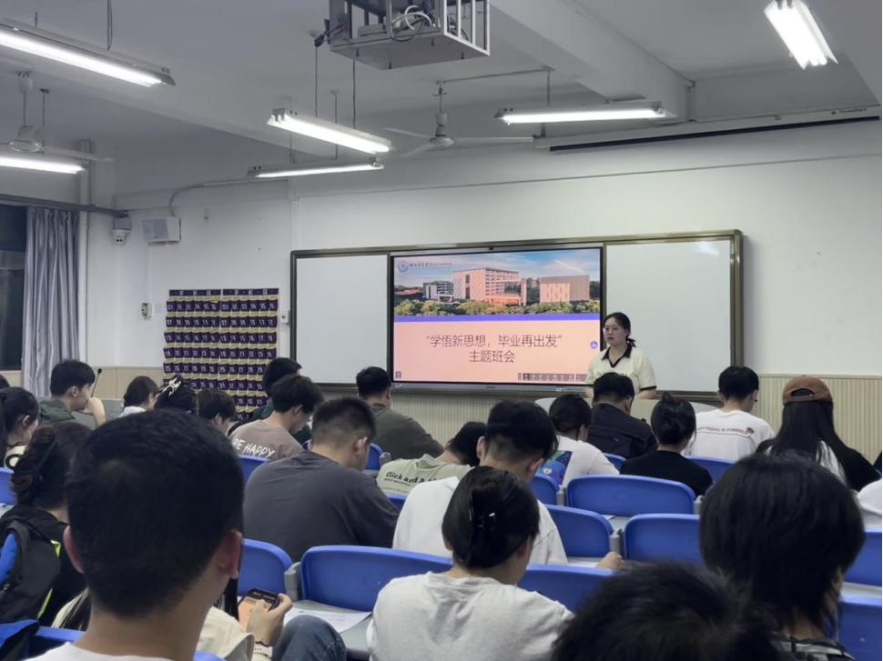 为切实做好2024届毕业生毕业教育和文明离校工作,加强毕业生思想政治教育,坚定理想信念,引导毕业生爱国爱党、爱校荣校,tyc33455cc于6月6日召开“学悟新思想,毕业再出发”2024届毕业生思政教育主题班会。本次班会主要围绕“信念理想”“文明安全”“心理健康”“诚信有我”“就业未来”五个主题内容展开。