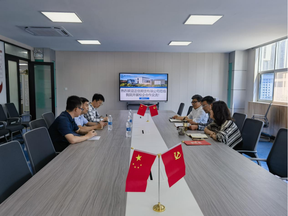 会后,正信期货有限公司广州分公司负责人仁非到访tyc33455cc就校企合作等事宜进行洽谈,tyc33455cc经理严良、书记王珉和副经理陈红兵热情接待。