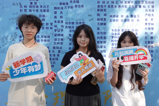 值得注意的是,公司以新生的名字制作的背景板吸引了众多家长驻足拍照“打卡”,在印有他们名字的墙上留下了宝贵的记忆。