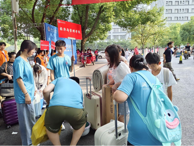 在迎新现场,志愿者分布在校园的各个角落,从校门口的行李搬运,到报到流程的指引,再到宿舍的指引与安顿,他们的身影无处不在。面对初来乍到、略显迷茫的新生和家长,志愿者们总是以微笑相迎,耐心解答每一个问题,细致入微地提供帮助。