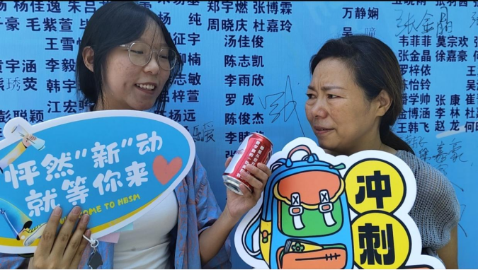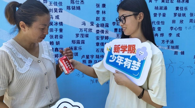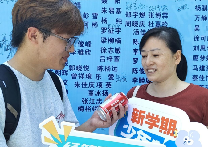 清晨的阳光透过树梢,洒在校园的每一个角落,也为新生们的脸庞镀上了一层金色的光辉。在公司精心布置的由新同学的名字拼成的“你好,新同学”展板上,一幅幅温馨的画面悄然上演。新生们手拿带有感恩标语的可乐上,眼含热泪,送给一同而来的父母,用最简单却最真挚的方式表达着对父母的感激之情。