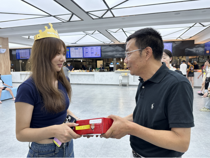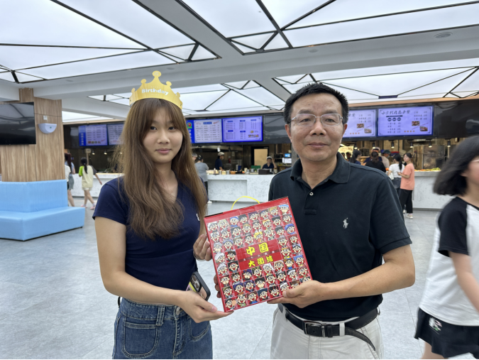 值得一提的是,在抽奖环节中,一位新生幸运地抽中了特等奖。他决定将这份珍贵的礼物赠予自己的辅导员——关心怡老师,以表达对关老师在入学前给予的关怀以及辛勤工作的感激之情,将这份感恩之情铭记于心。