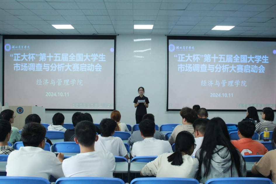10月11日,“正大杯”第十五届全国老员工市场调查与分析大赛(以下简称市调大赛)启动会在鸿博楼J3教室正式举行。tyc33455cc副经理孟静、市调大赛指导老师及参赛选手们参加此次启动会,会议由员工黄思因主持。