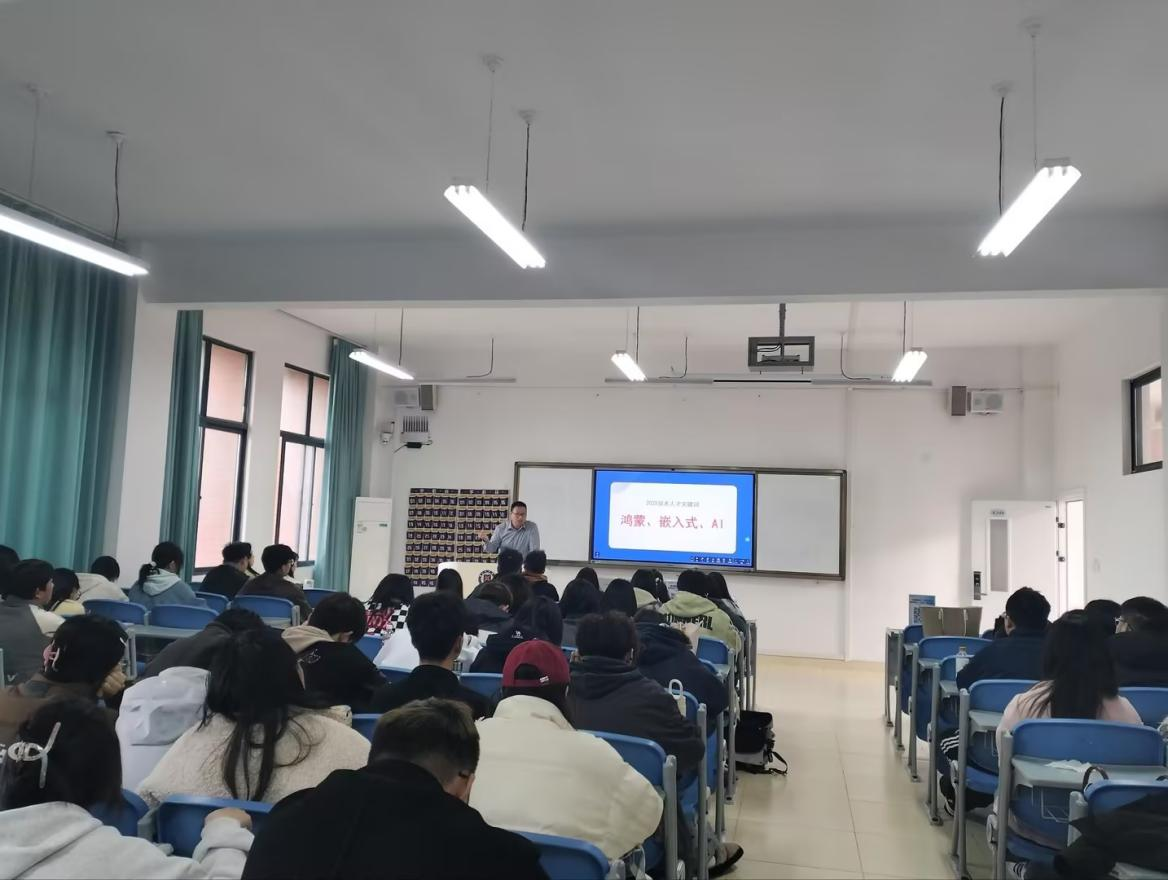 讲座中,华为资深工程师向同学们介绍了鸿蒙系统的技术突破,通过动态演示、案例对比与场景模拟,生动解读了鸿蒙系统的技术优势。鸿蒙不仅是技术的革新,更是万物互联时代的生态基石。随着智能终端、车载系统、工业互联网等领域对鸿蒙人才需求的激增,掌握相关技术将成为开发者的重要竞争力。