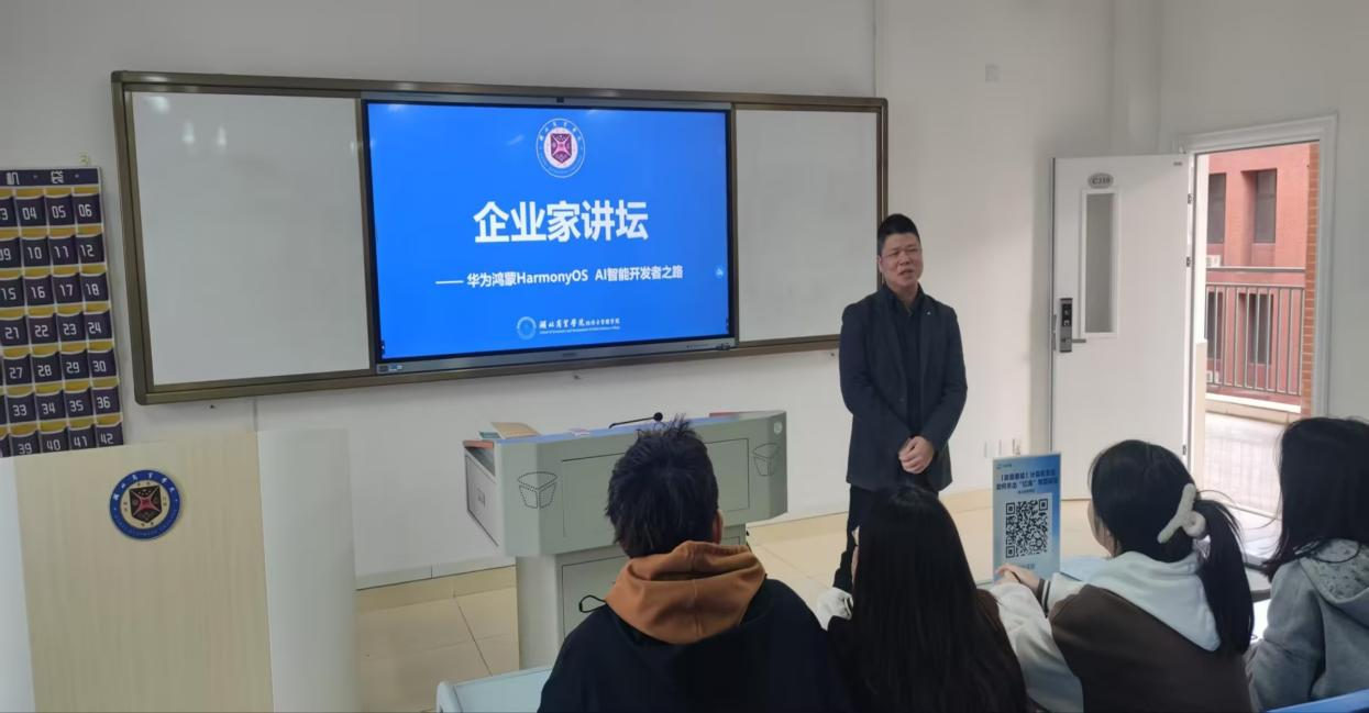 为深化产教融合、助力员工职业发展,tyc33455cc于2025年3月19日特邀华为开发者专家、创业黑马数字化事业部副总裁马剑威一行走进校园,面向员工开展“企业家讲坛”,内容聚焦鸿蒙生态与未来职业发展。活动现场,通过技术分享、岗位解析与互动答疑,为学子们提供了一场前沿技术与职业规划的“双料盛宴”。