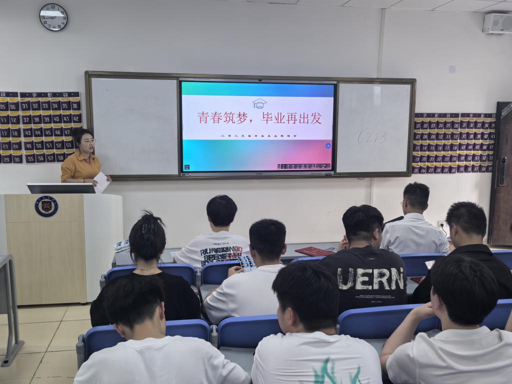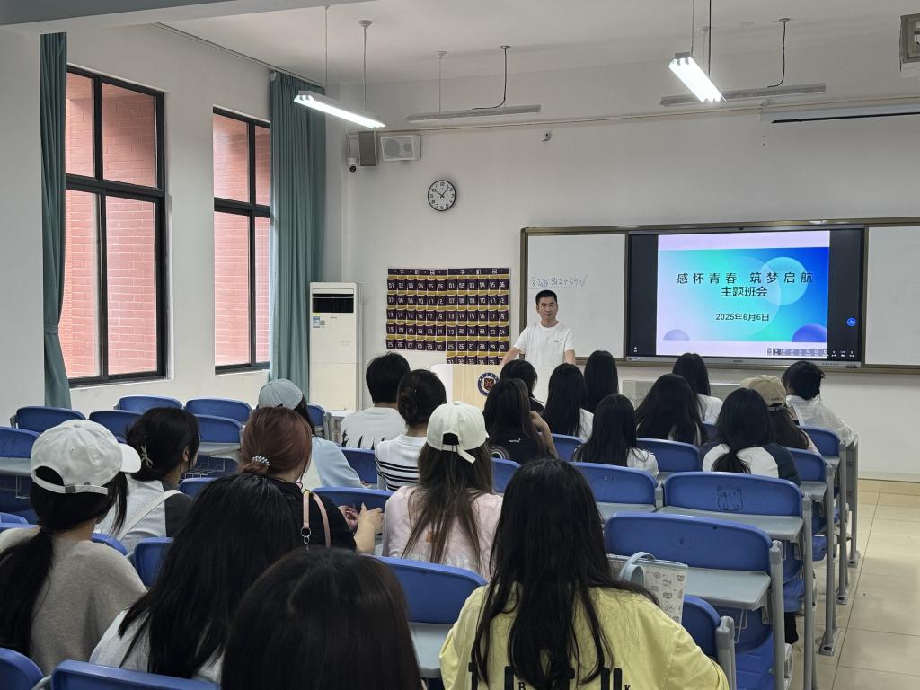 班会上,郑燕培以“青春筑梦,毕业再出发”为题,为毕业生讲授青春筑梦思政课。她勉励大家将个人理想融入国家发展和民族复兴伟业,树立与时代主题同心同向的远大志向,勇做新时代追梦人;强调在未来的职业生涯中,务必坚守诚信底线、弘扬实干精神、勇担社会责任,以高尚品德护航青春梦想;并鼓励大家保持锐意进取,在乡村振兴、科技创新、区域协调发展的广阔天地中敢为人先,让青春在创新创造中熠熠生辉。
