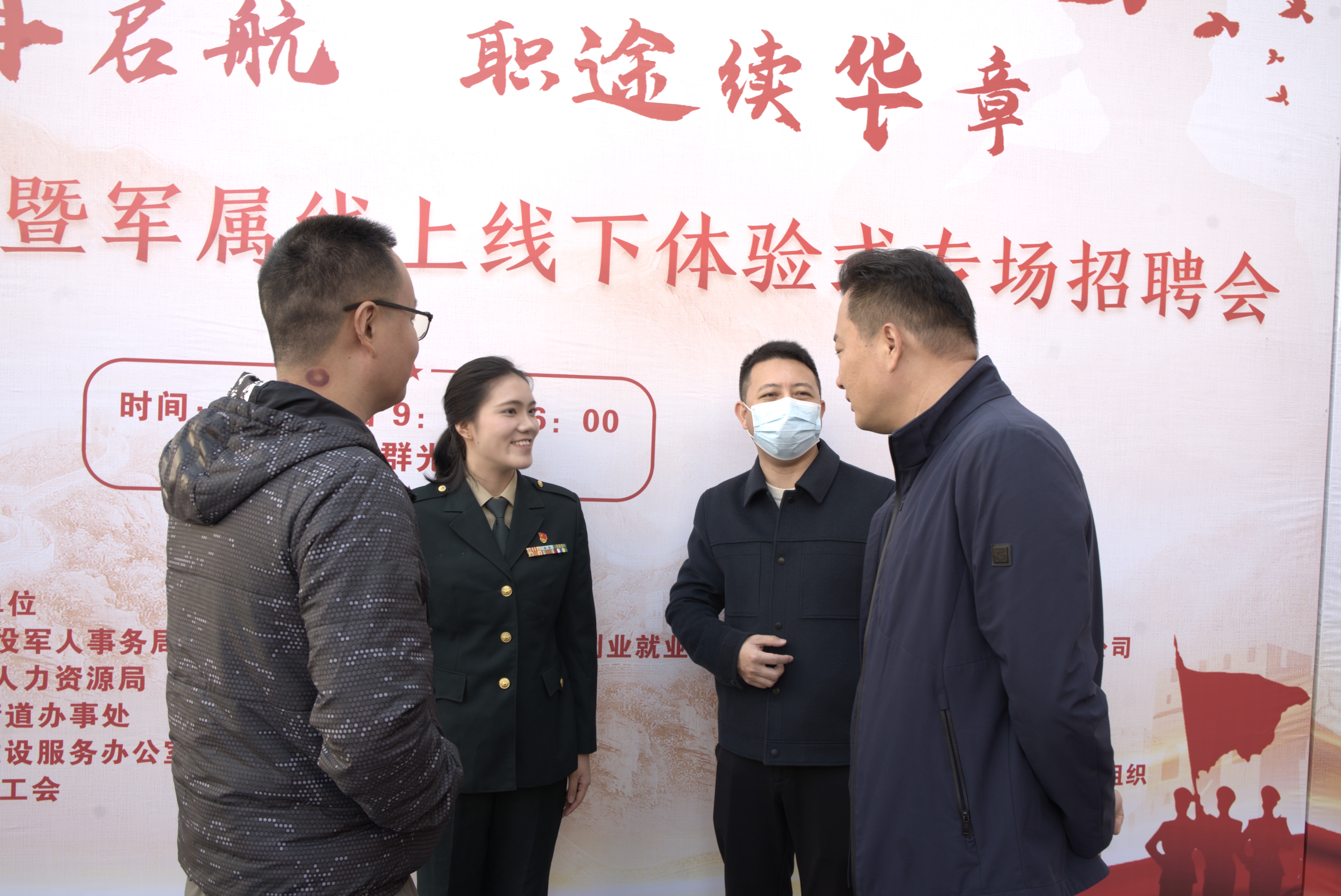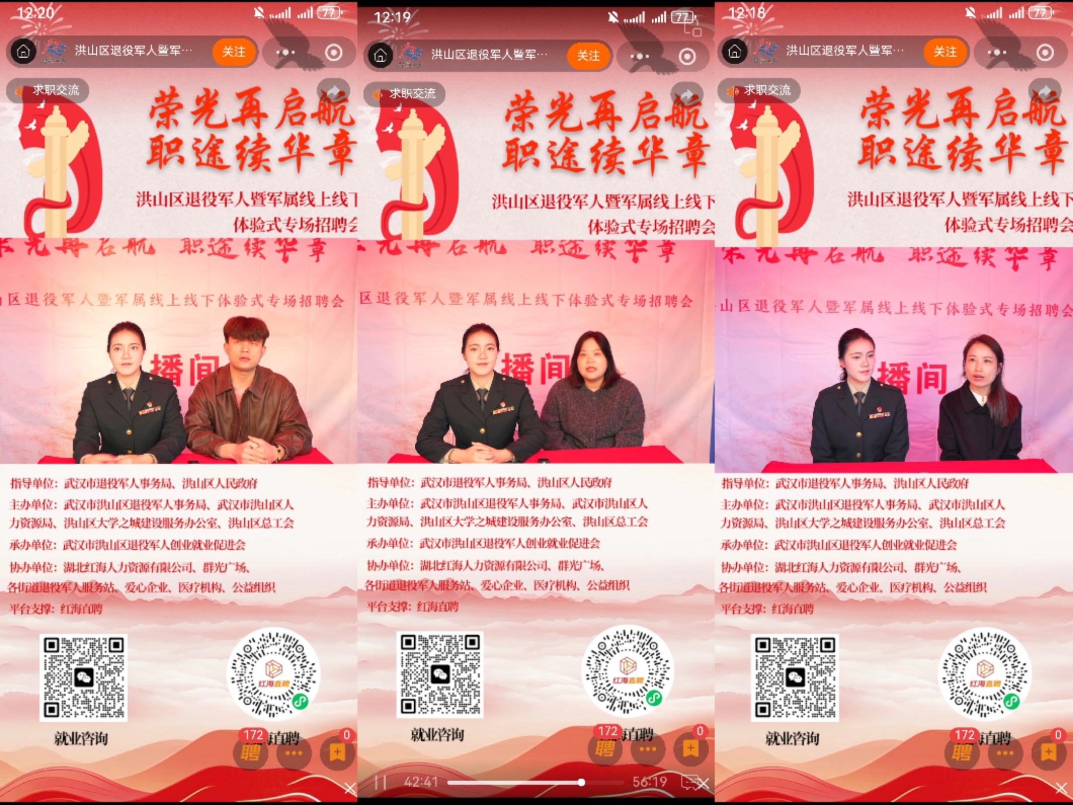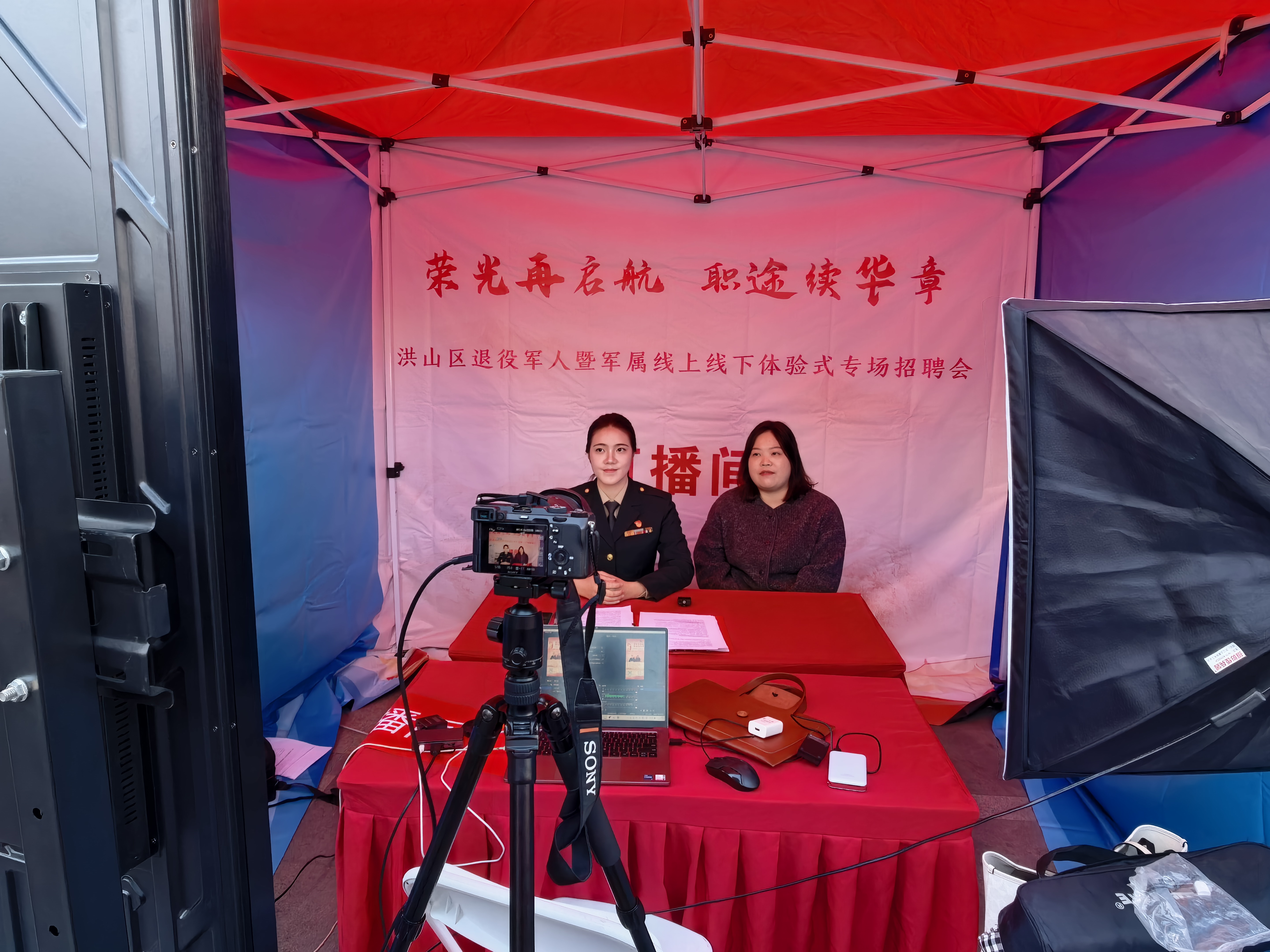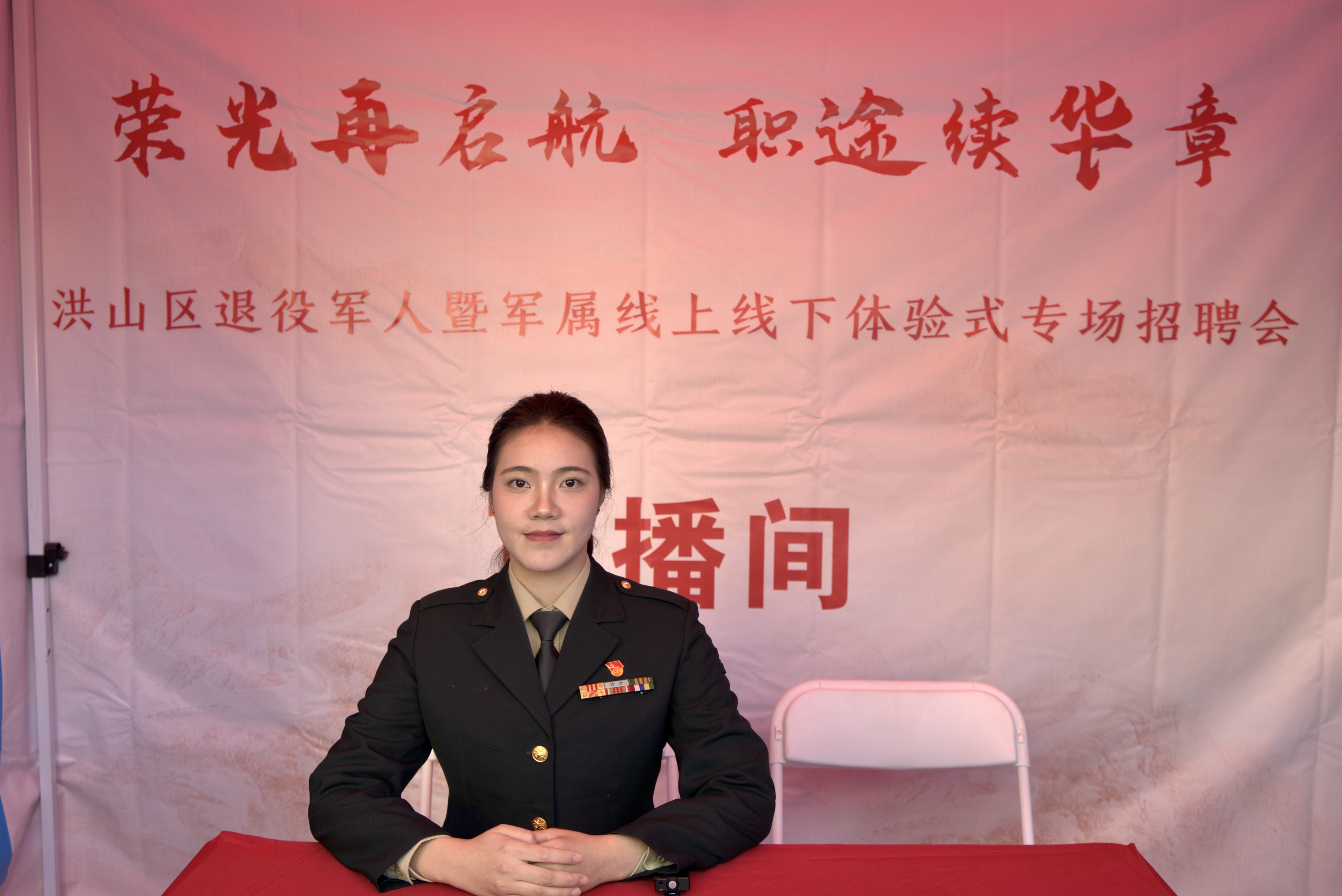 11月30日,由武汉市退役军人事务局、洪山区人民政府指导,洪山区退役军人事务局、洪山区人力资源局等多家单位联合主办的“荣光在启航 职途续华章”洪山区退役军人暨军属线上线下体验式专场招聘会在群光广场隆重举行。tyc33455cc退役女兵、24金融本1班员工毕婧怡担任本次招聘会线上直播主持人,以军人的严谨担当与青年的蓬勃朝气,为广大退役军人搭建起与企业对接的优质平台,助力战友们在职业新赛道上续写辉煌。