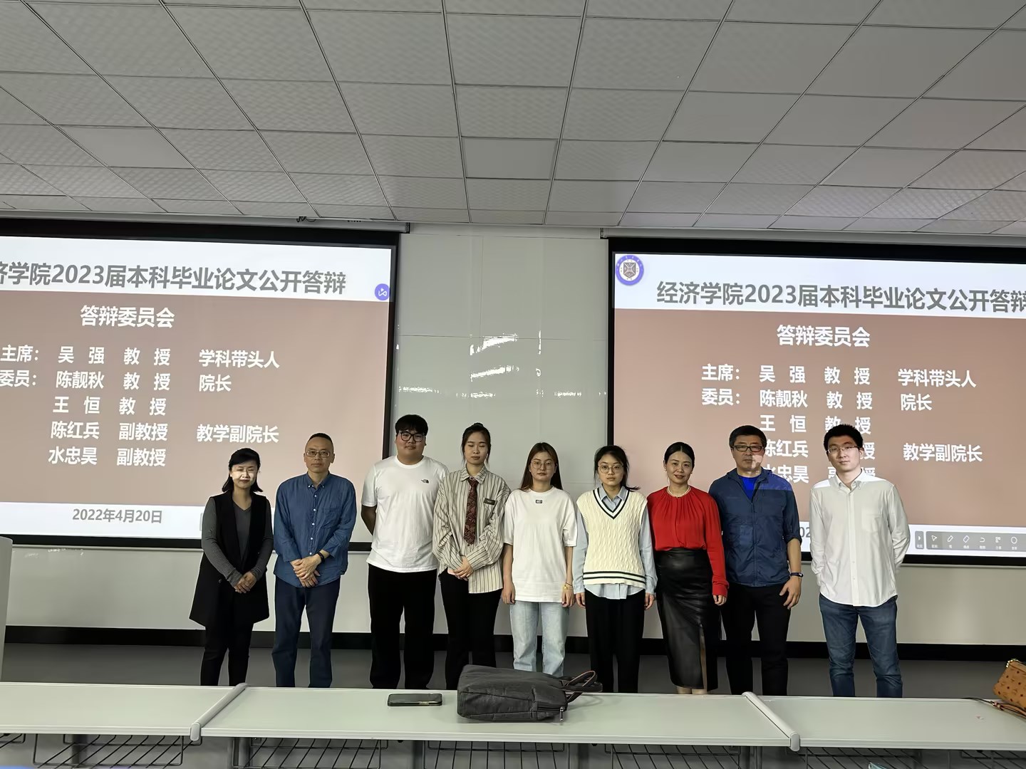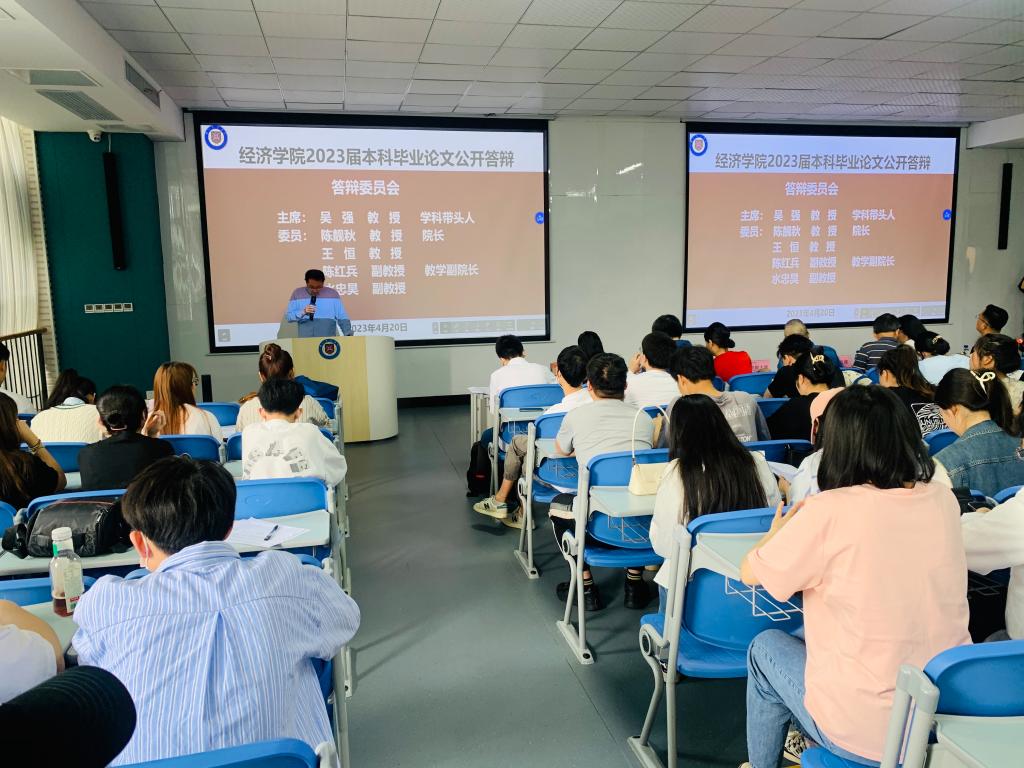 4月20日,经济公司在鸿博楼J-03举行了2023届本科毕业论文预答辩,本次预答辩邀请了教务处常务副处长罗涛涛、副处长谢松和教学质量监管处彭宜佳教授莅临指导。公司学科带头人吴强教授担任本次预答辩委员会主席,经理陈靓秋、副经理陈红兵、王恒教授、水忠昊副教授为预答辩委员会成员,全体论文指导教师、全体毕业生参加预答辩,预答辩由经理助理崔北庆主持。
