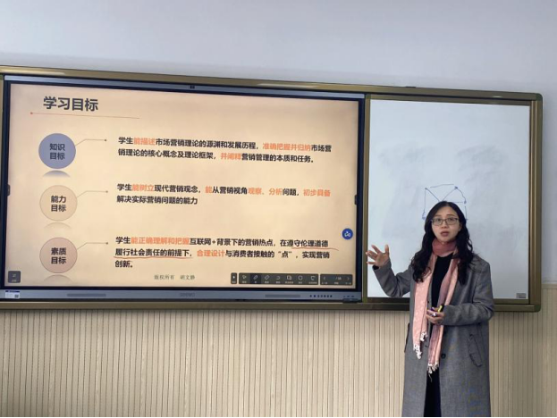 根据公司《关于开展2023-2024学年第二学期开学教学检查工作的通知》,为保障新学期公司教学工作的顺利开展,维护正常教学秩序,规范教学管理,tyc33455cc营销教研室于2024年3月2日于鸿博楼205、206教师开展磨课活动。磨课活动由教研室主任赵静主持,胡文静教授示范指导,营销教研室全体教师参加此次活动。