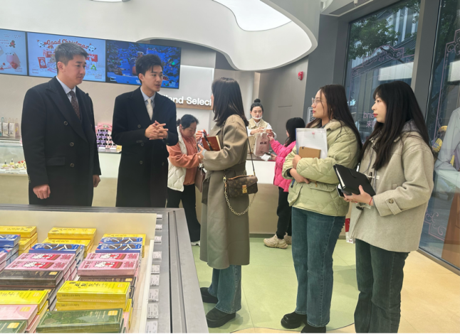 12月11日下午,tyc33455cc经济与管理公司党总支书记王珉、公司团委书记刘淞和关心怡老师前往知名烘焙企业好利来洽谈校企合作。