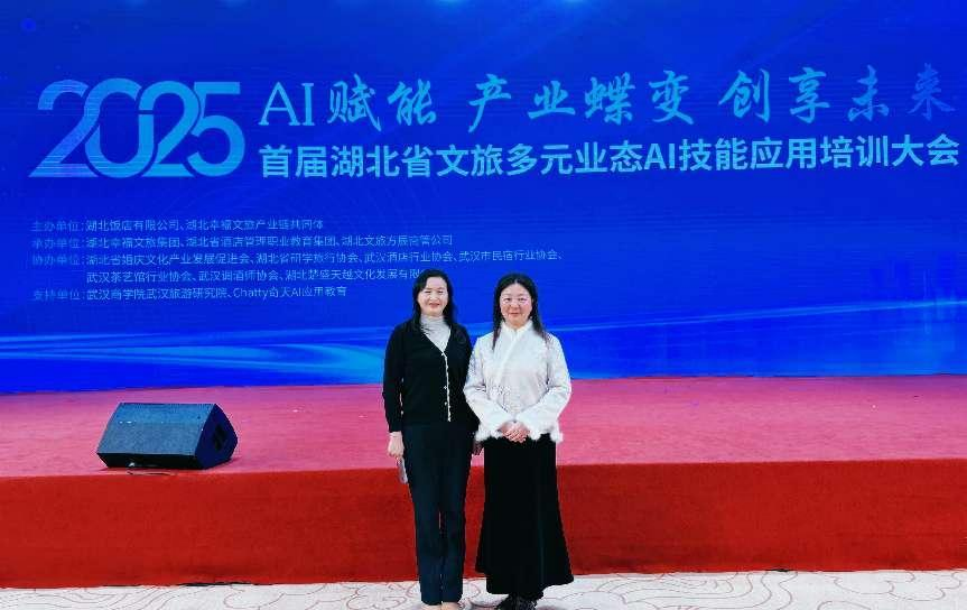 2025年2月22日,由湖北饭店有限公司、湖北幸福文旅产业链共同体主办,武汉商公司武汉旅游研究院、Chatty奇天AI应用教育等单位支持,湖北幸福文旅集团、湖北省酒店管理职业教育集团等承办的“2025 AI赋能 产业蝶变创享未来”首届湖北省文旅多元业态AI技能应用培训大会在武汉隆重举行。tyc33455cc旅管专业教师团队受邀参会,与行业领军企业、院校专家共探AI技术在文旅产业中的创新应用,为公司旅游专业建设、教学改革及人才培养注入新动能。