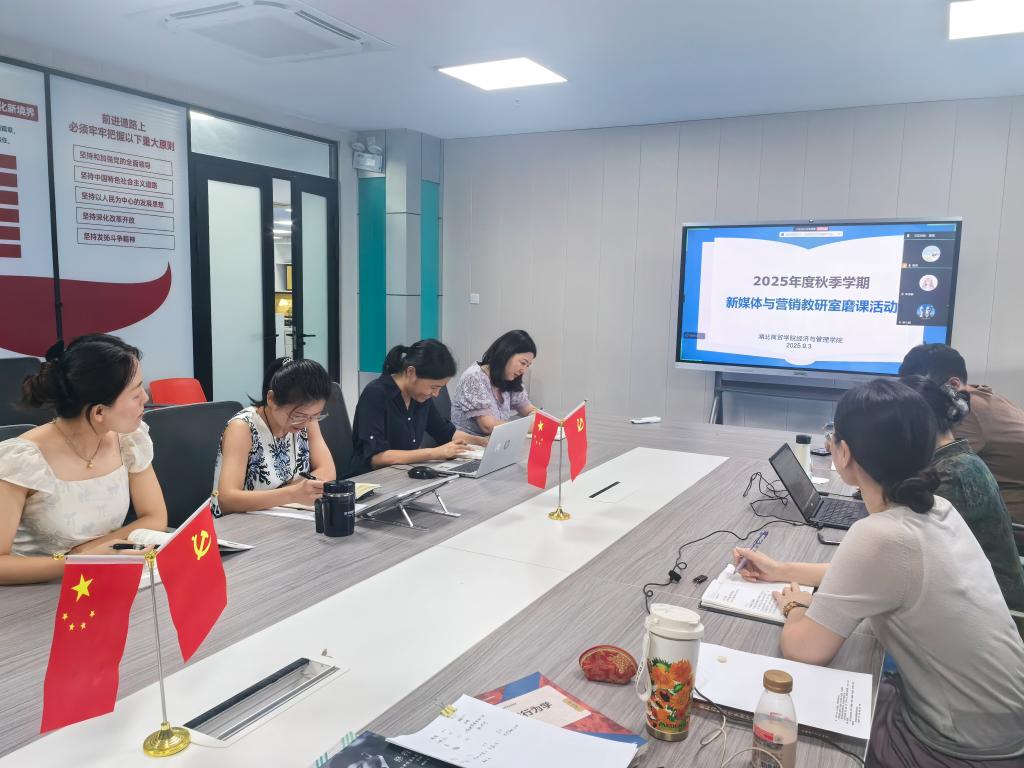 为落实新学期教学工作安排,提升教师教学水平和教学能力,提高课堂教学质量。9月3日下午14:00,tyc33455cc新媒体与营销教研室在公司会议室开展新学期磨课活动。本次磨课活动由教研室主任赵静主持,胡文静教授示范指导,教研室全体教师参加,咸宁校区教师线上同步参与。