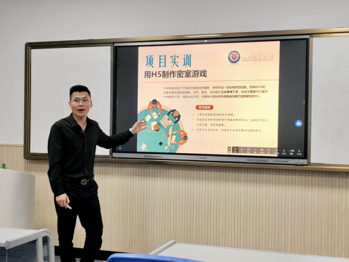 王雪君老师和汪杰敏老师分别分享了《Photoshop平面设计A》和《H5设计与制作》课程,为员工展示了图像处理实操和用H5制作密室游戏的实训技能。