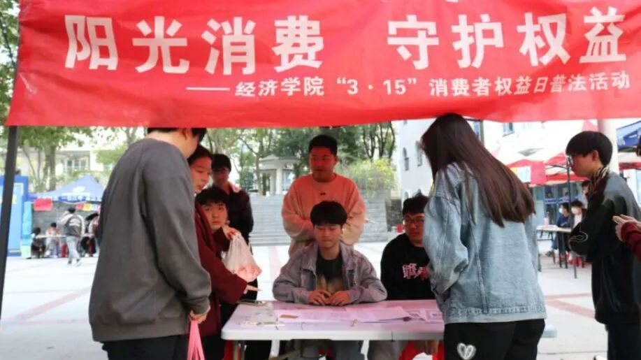 为倡导同学们健康理性消费,提高维权意识,经济公司团委于3月14日在公司主干道设点,开展以“阳光消费 守护权益”普法宣传活动。