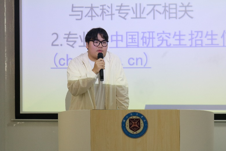 随后,刘少田从自身经历入手,详细介绍了研招信息获取途径、学硕与专硕的区别、心态调整等,他建议大家无论是就业还是升学都要充分挖掘和突出自身优势。