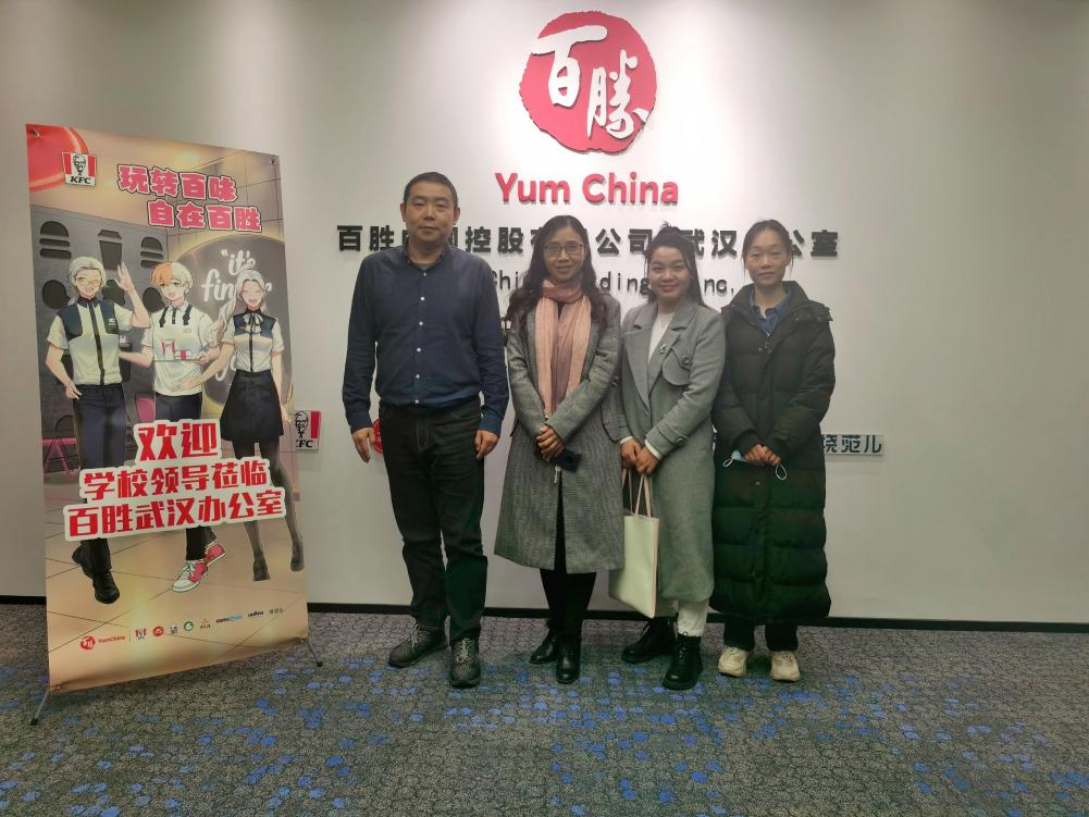 为了开拓更多就业岗位,2023年3月17日,tyc33455cc市场营销教研室主任赵静、专业带头人胡文静一行来到百胜餐饮(武汉)有限公司开展“访企拓岗”企业走访活动。