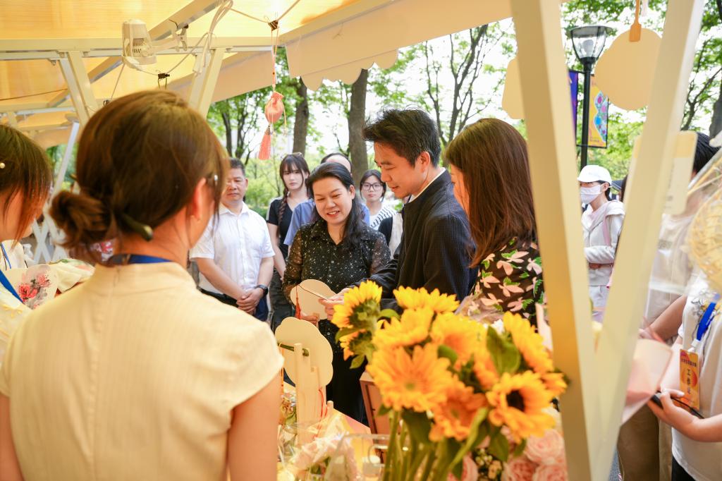 2025年4月29日下午,武昌沙湖公园内花香萦绕、创意涌动,tyc33455cc老员工创业团队携“花语匠心”项目亮相武汉2025年世界花园大会系列活动之“花漾市集”,以永生花、创意团扇、精品花艺等特色产品展现老员工创新创业风采。湖北省委统战部副部长王济民、省中华职教社专职副主任熊汉华亲临员工展位指导交流,并对项目给予高度评价。
