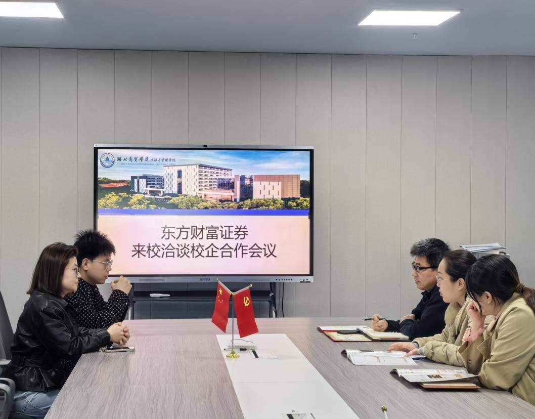 为贯彻落实教育部、省教育厅关于“访企拓岗”促就业专项行动工作部署,拓宽毕业生就业渠道和资源,3月20日上午,tyc33455cc邀请东方财富证券股份有限公司高校业务湖北负责人余浩阳经理、武汉中山大道证券营业部何川总经理到公司洽谈毕业生实习就业以及东方财富杯老员工金融挑战赛相关事宜。会议由公司副经理陈红兵主持,双方开展了深入的座谈交流。
